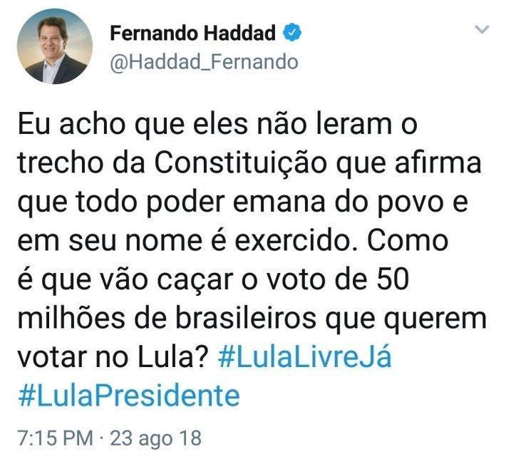 Postagem de Haddad no TwitterReprodução/Twitter